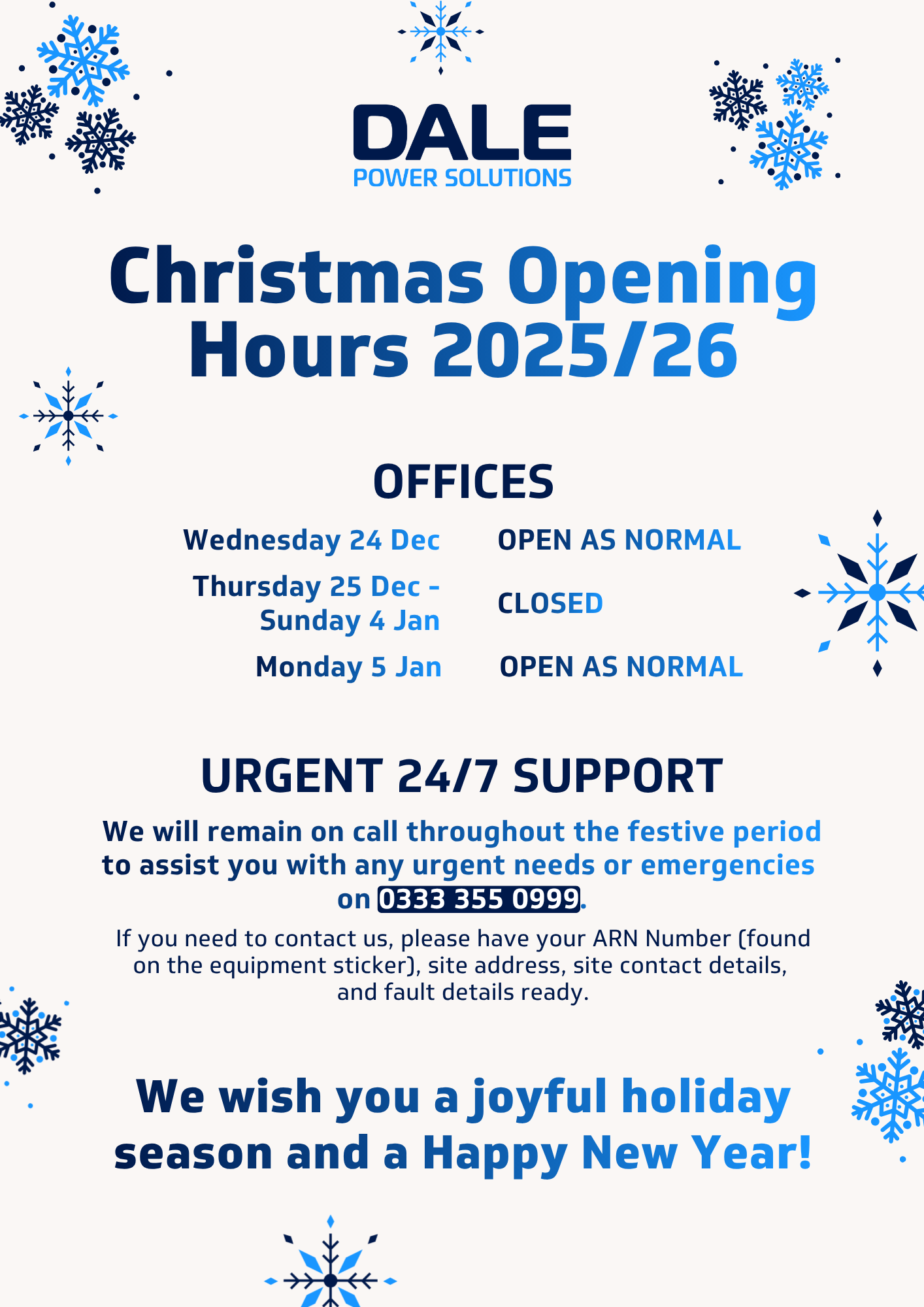 Please see our Christmas and New Year 2025/26 opening times below.