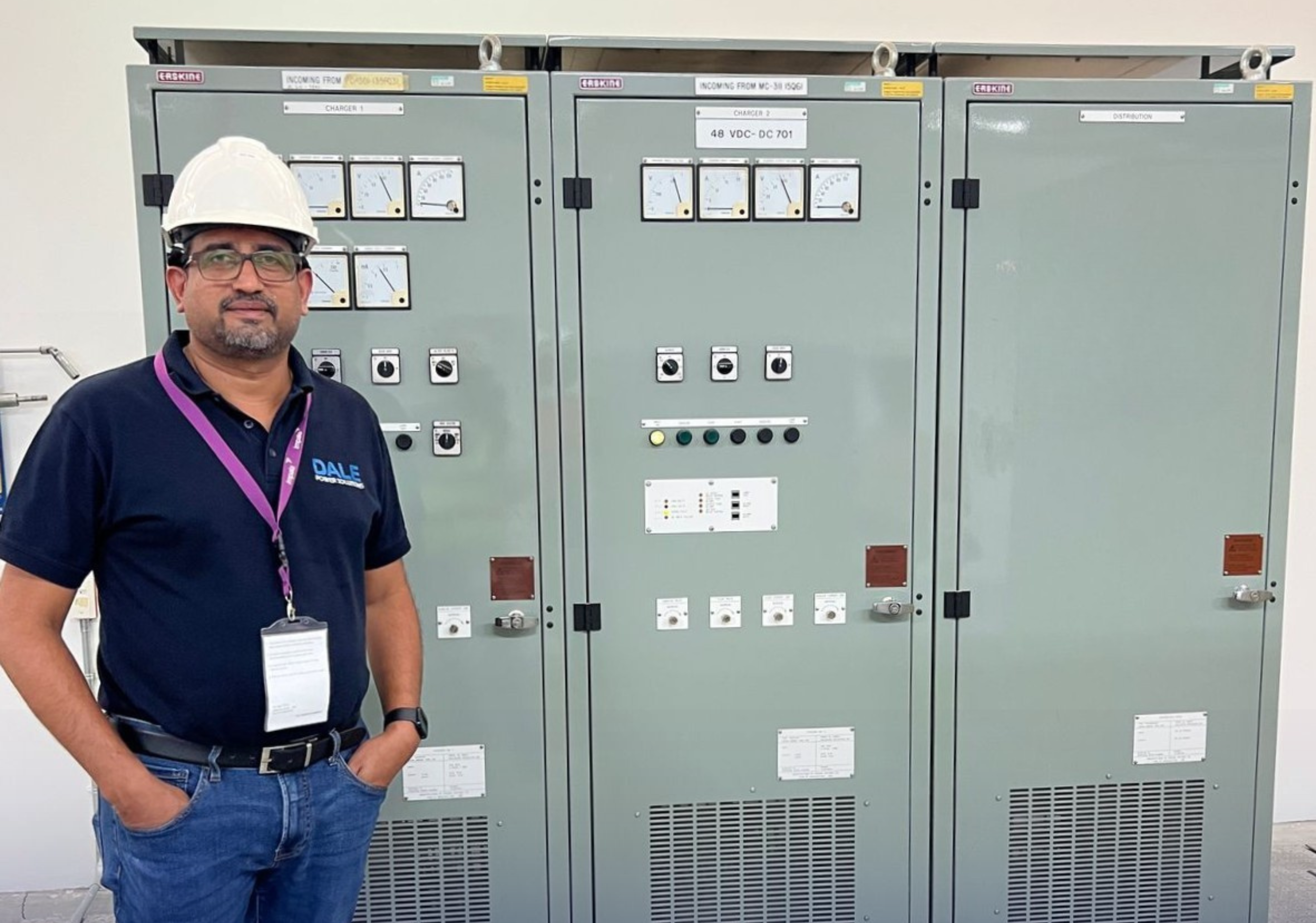 Pictured: Last year, Sales Manager for the Middle East, Rajesh Nair, visited a customer site last year in the UAE to plan the replacement of their long-serving Erskine 3CV Battery Charger UPS, which had been operational for 26 years.