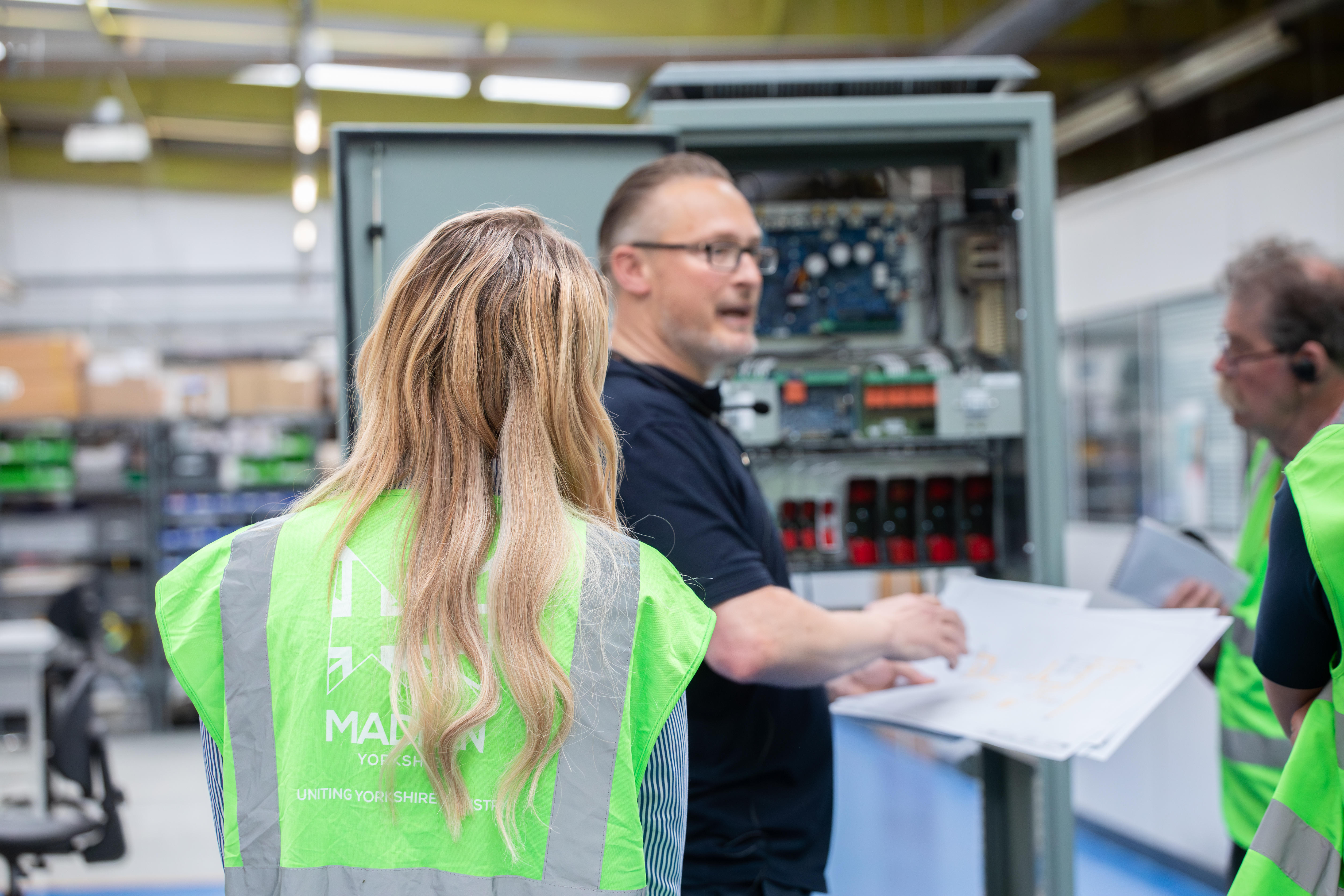 UPS Panel Wire Supervisor, Andrew Smith, giving a talk on our UPS Systems at our Factory Tour with the Made in Yorkshire network