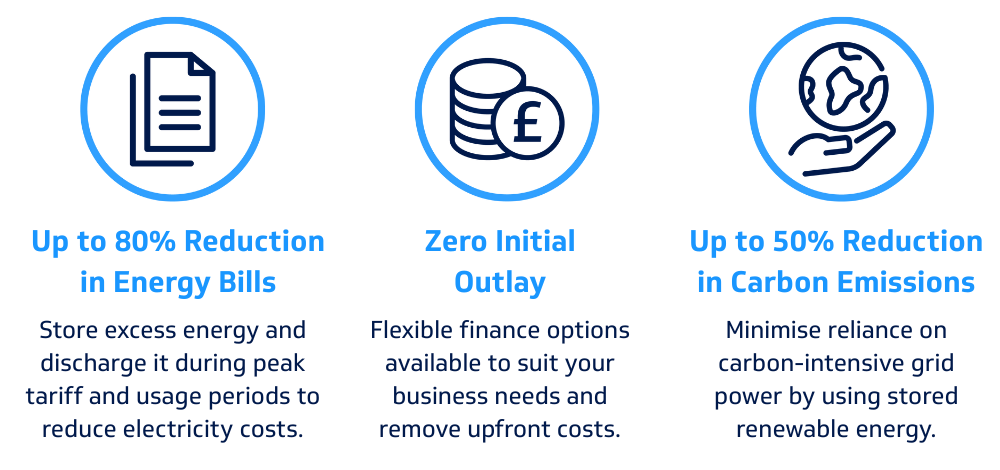 Achieve Up to 50% CO2 and 80% Energy Bill Savings with Battery Energy Storage Systems (BESS). We also offer flexible financing options.